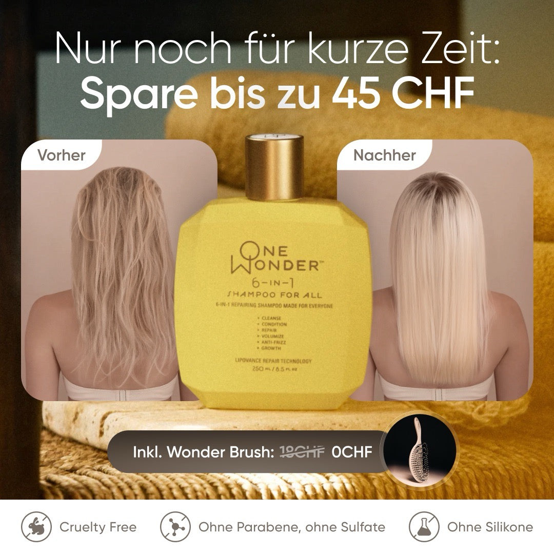 Für kurze Zeit kannst du bist zu 45 CHF sparen, erhälst die WonderBrush im Wert von 18 CHF kostenfrei zu deiner Bestellung. Versandkosten: Übernehmen wir.